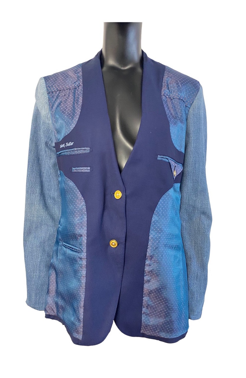 Heb je wel eens bekeken hoe prachtig de binnenkant van een colbert is afgewerkt? Bij dit colbert was dat opvallend mooi en besloten we het om te keren. De binnenkant naar buiten dus. Daarom geen reverskraag maar een platliggende V-hals. De sluiting is daardoor ook veranderd in een damessluiting.