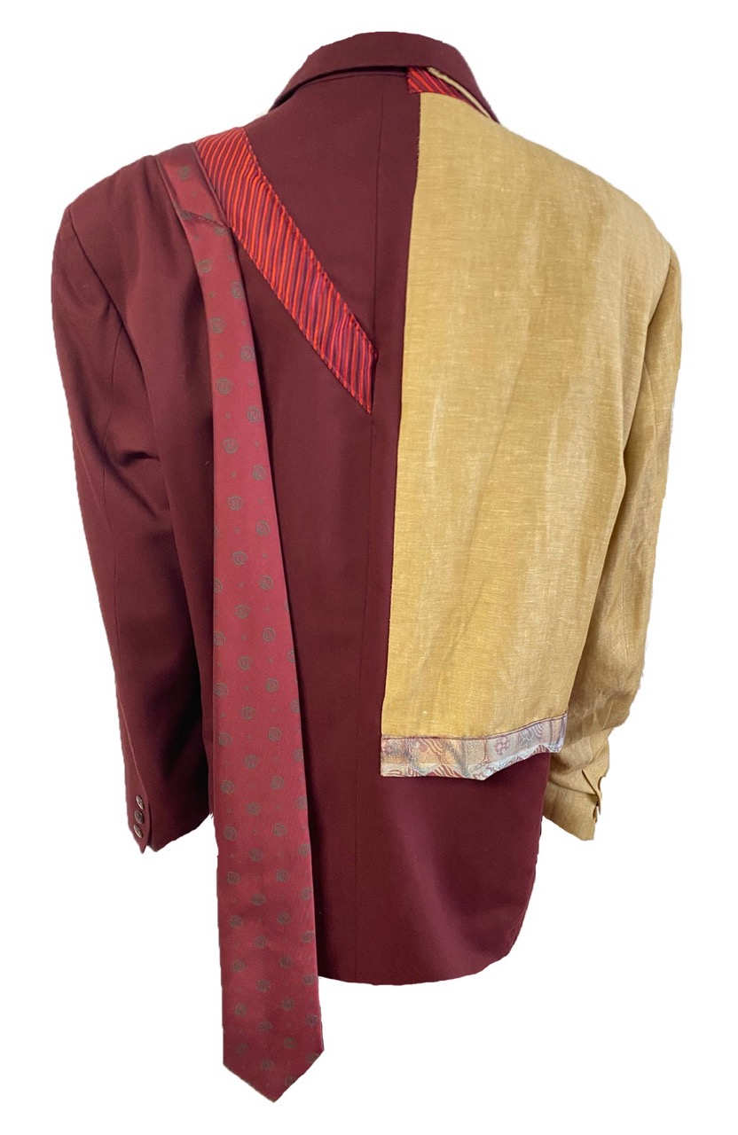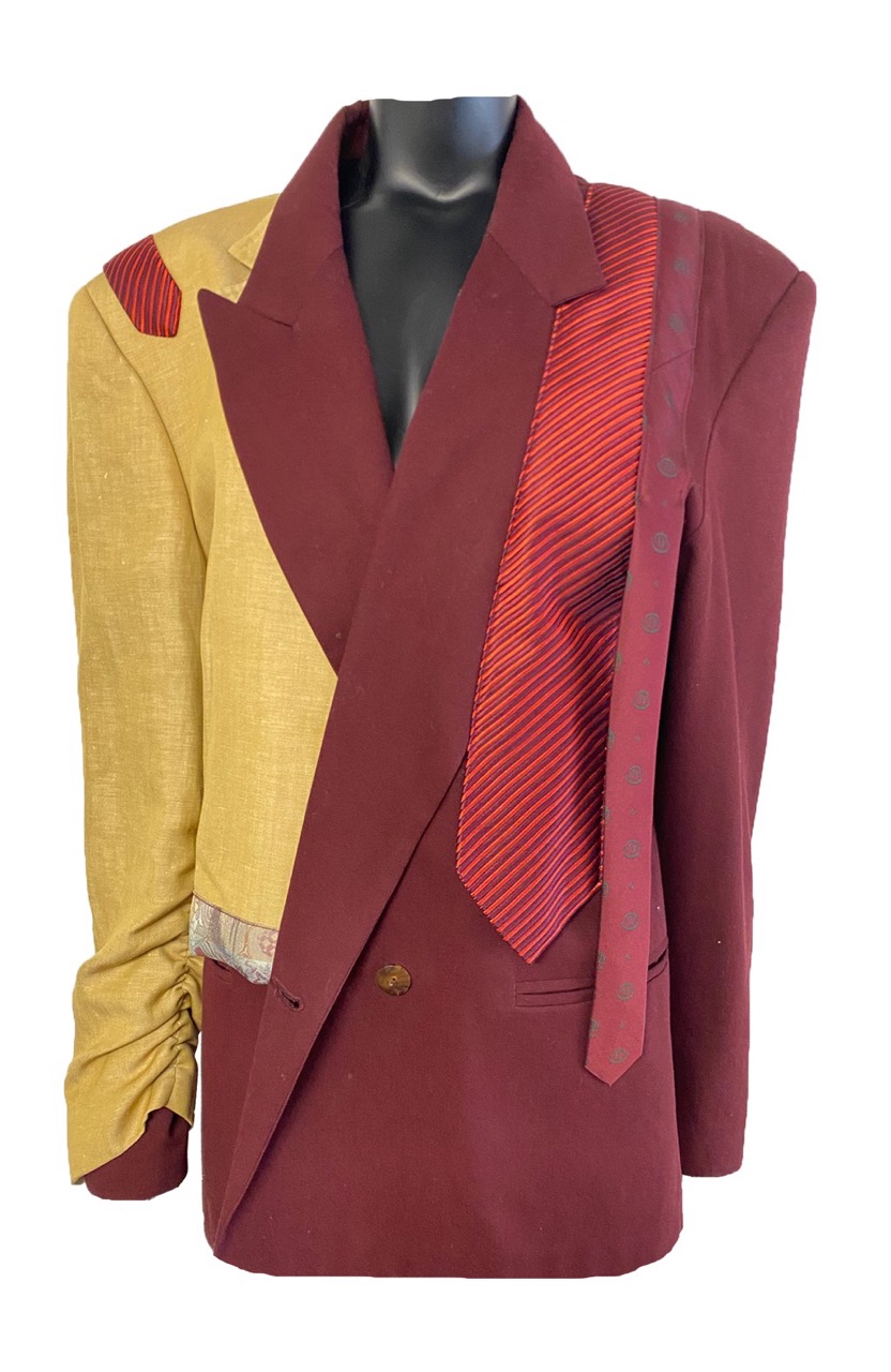 Humor is het sleutelwoord bij dit colbert. “Ik kan niet kiezen welk jasje ik zal aantrekken”. En “van die stropdas krijg ik het altijd benauwd”. Hierbij zijn het de nonchalant opgeschoven mouw en over de schouder gegooide stropdassen die het beeld zeker het bekijken waard maken. Wil je een statement maken? Iets aandoen waar iedereen het over zal hebben?